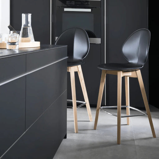 Ver todos los detallesbanco basil cuero negro y base roble natural