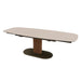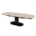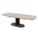 CAMEO es una mesa extensible de líneas ovaladas bien definidas que le confieren una fuerte personalidad y permiten estabilidad y máxima utilidad del espacio bajo la tapa. La columna central, de metal pintado, sostiene los diversos tipos de tapas de una refinada combinación de metal/madera o una moderna de metal/cerámica con efecto de mármol que juegan con la unión de materiales fríos y cálidos.