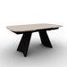 ICARO es una mesa extensible con base de madera enchapada y tapa de cerámica.