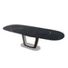 La mesa extensible Orbital se distingue desde siempre por un estilo esencial y contemporáneo; el rediseño ha sido capaz de mantener intacta la identidad que la ha convertido en un emblema de estilo. La nueva Orbital es el resultado de un proceso de racionalización de las líneas que ha hecho las formas aún más ligeras y modernas no obstante la ampliación de la superficie de la tapa, con el objetivo de valorizar un mecanismo de extensión automática único y tecnológicamente avanzado: con un solo movimiento fluido de los brazos de metal, las dos prolongaciones salen por debajo de la tapa y se nivelan simultáneamente manteniendo la forma elíptica.