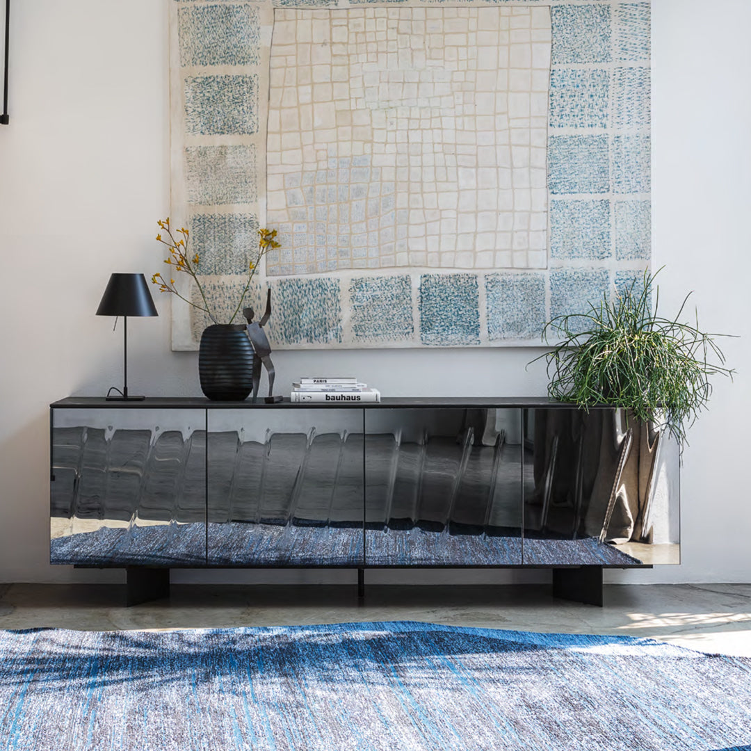 CS4150-FB 200 La mesa Yoroi está inspirada en la antigua armadura de los samuráis, a base, con ranuras verticales e inserciones de madera, tiene un...