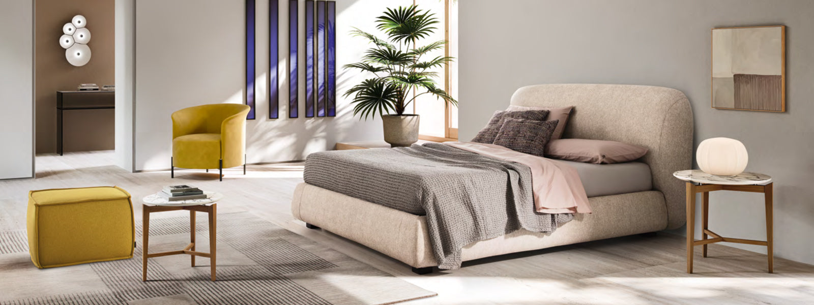 CS6090(DTMQ0N3) Noa es una cama escultural, de volúmenes orgánicos, inspirada en las rocas esculpidas por el viento. El cabecero es suave y volumin...