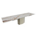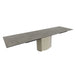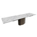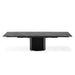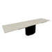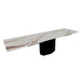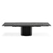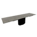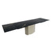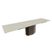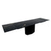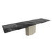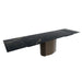 La mesa Yoroi está inspirada en la antigua armadura de los samuráis, a base, con ranuras verticales e inserciones de madera, tiene una fuerte presencia, contrastando el