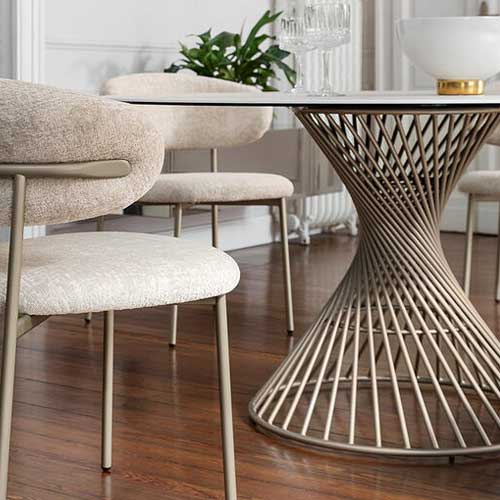 Metales: Creado con una variedad de metales en sus muebles para aportar durabilidad, resistencia y un estilo contemporáneo.