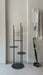 Columna portaobjetos de forma circular con varios niveles, fabricada completamente en metal pintado.
