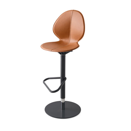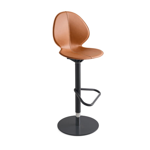 CS2233 Banco BASIL en materiales mixtos: Base metálica y asiento de polipropileno y cuero con diseño en forma de hoja. La combinación de materiales...