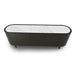 Elevado desde el suelo, tiene una forma ovalada acentuada por una superficie de cerámica ligeramente retrasada respecto al perímetro, diseñando así un espacio útil entre la puerta y la superficie para la apertura de las puertas y cajones.