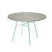 La mesa fija YO! tiene una base de aluminio tratado y pintado para el uso en exteriores.