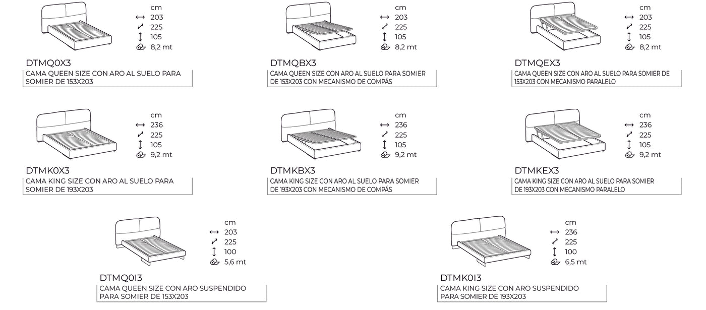 Ver todos los detallescama queen size kilian round con aro al suelo y mecanismo paralelo