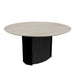 La mesa Yoroi está inspirada en la antigua armadura de los samuráis, la base, con ranuras verticales e inserciones de madera, tiene una fuerte presencia, contrastando la simplicidad de la tapa ovalada. Por estas características y los acabados seleccionados,