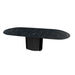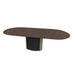 La mesa Yoroi está inspirada en la antigua armadura de los samuráis, a base, con ranuras verticales e inserciones de madera, tiene una fuerte presencia, contrastando el