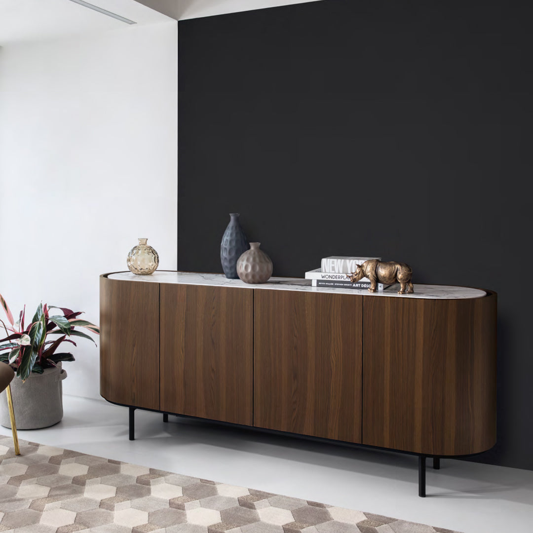 CS6076-1El aparador LAKE es una propuesta para la sala de estar que destaca por sus líneas suaves y armoniosas. Elevado desde el suelo, tiene una f...