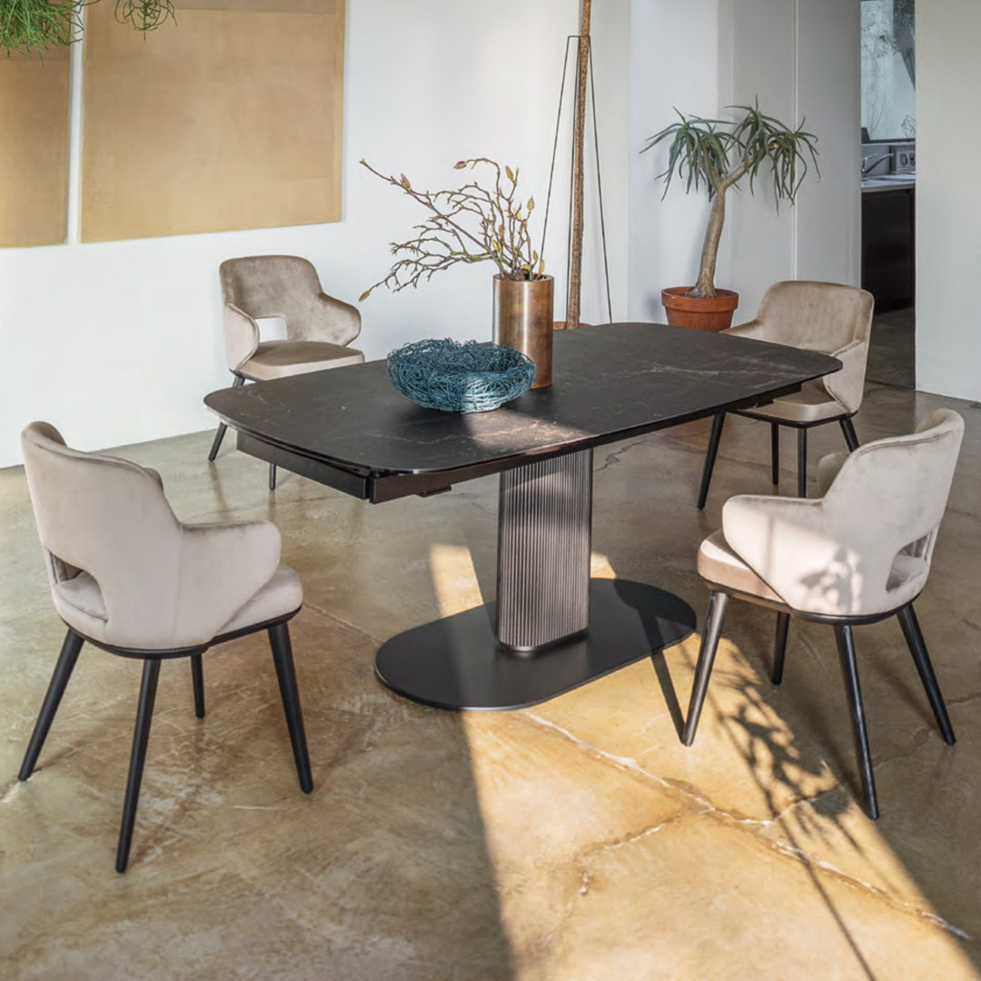 CS2052CARMEN se caracteriza por ser una silla de figura esbelta y elegante. Sus 4 patas de metal, finas y resistentes, exaltan su minimalismo y so...