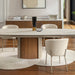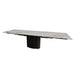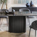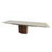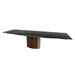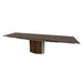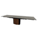 La mesa Yoroi está inspirada en la antigua armadura de los samuráis, a base, con ranuras verticales e inserciones de madera, tiene una fuerte presencia, contrastando el