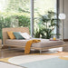 Cuenta con una cabecera completamente de madera hecha a mano de un solo bloque que muestra el grano natural de la madera.