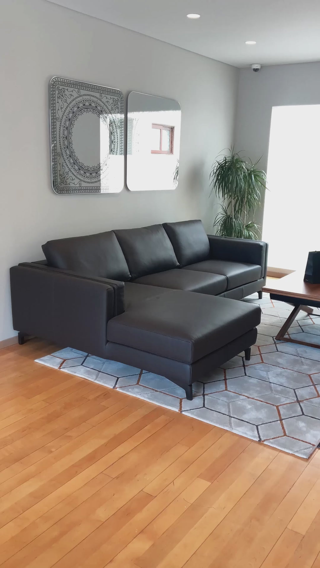 Sala esquinera moderna en piel