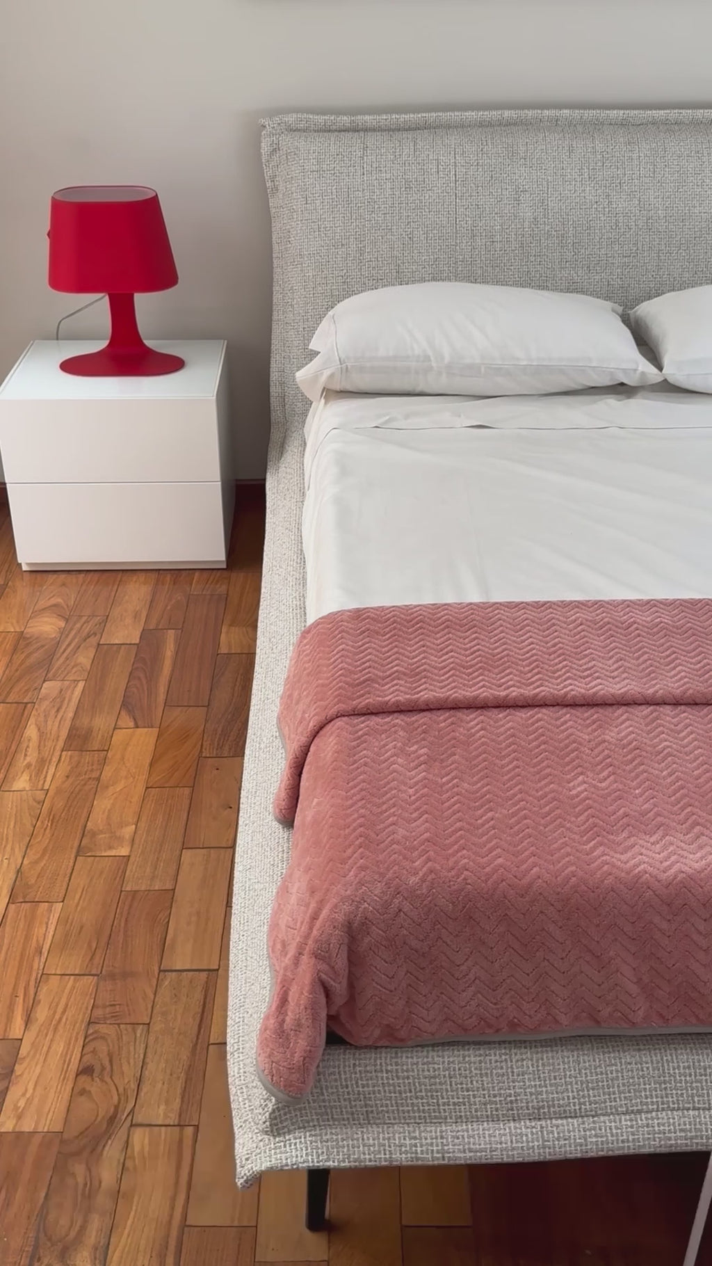 Tiene un marco ligero revestido, con las proporciones más adecuadas, que está integrado al cabecero en una confección única con costuras invisibles.