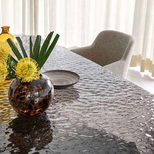 Cristales: Utiliza una variedad de cristaless en sus muebles para aportar un estilo moderno, elegante y sofisticado, al mismo tiempo que asegura durabilidad y funcionalidad.